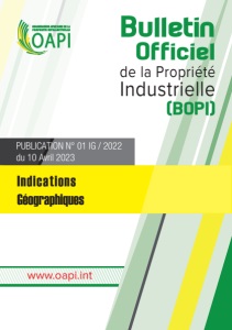 www.oapi.int Indications Géographiques PUBLICATION N° 01 IG / 2022 du 10 Avril 2023 Bulletin Officiel (BOPI) de la Propriété Industrielle