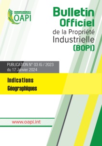 www.oapi.int Indications Géographiques PUBLICATION N° 03 IG / 2023 du 17 Janvier 2024 Bulletin Officiel (BOPI) de la Propriété Industrielle
